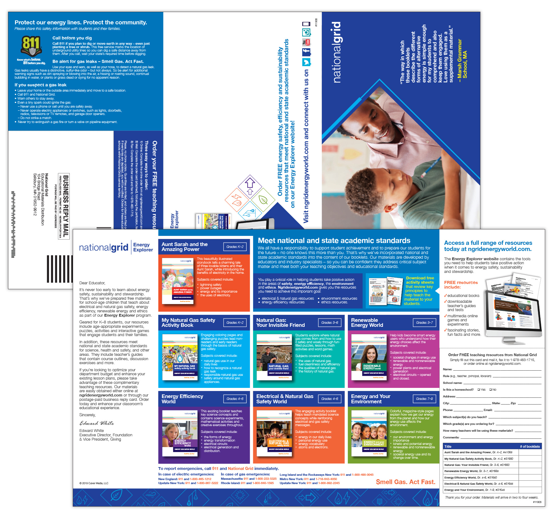An educational mailer to K–8 educators offering written materials and Internet resources that teachers can use in classrooms to promote electrical and natural gas safety awareness. Mailer includes 811 Call Before You Dig information and gas leak recognition/response tips for teachers to share with students and their families.